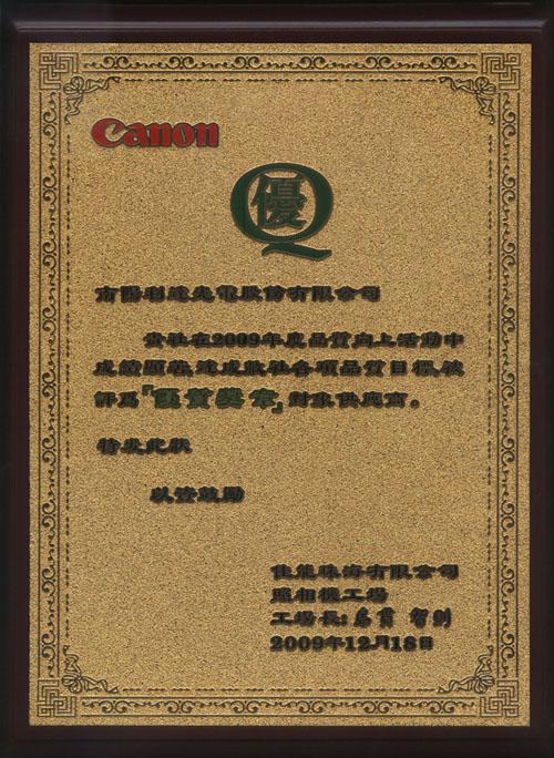 | ??????? 12月18日,公司在佳能的供應(yīng)商“優(yōu)質(zhì)獎(jiǎng)?wù)隆北碚脙x式上受到表彰,并由佳能島貫工廠長頒發(fā)了優(yōu)質(zhì)獎(jiǎng)?wù)伦C書。 |